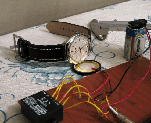 I’ve implemented a little piezo contact mic I built for a side project to record the sound of one of my chronographs. It works with the vibe I’m going for the track that I’m producing which is called ‘when I do wake up, where do I go?’